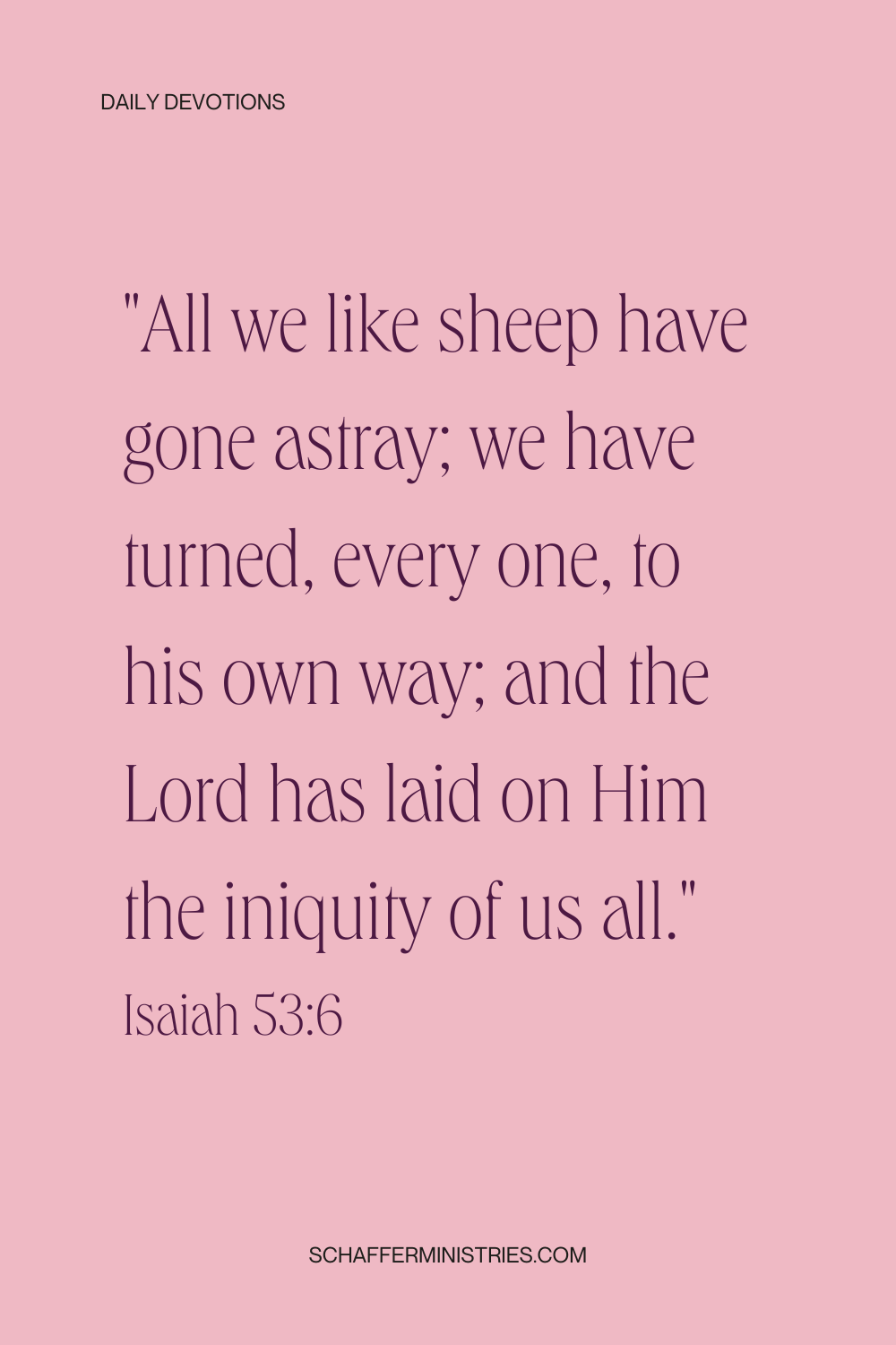 "All we like sheep have gone astray; we have turned, every one, to his own way; and the Lord has laid on Him the iniquity of us all." Isaiah 53:6