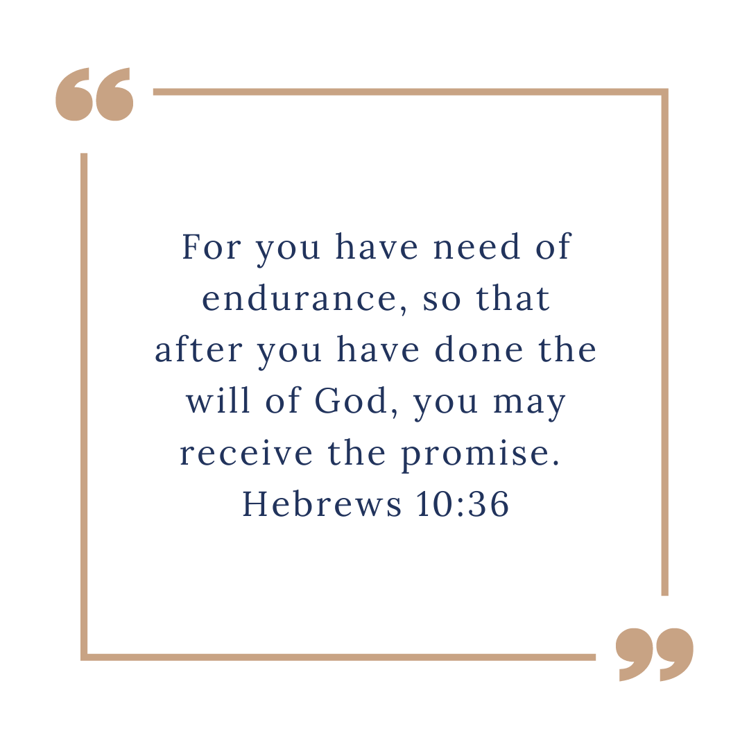 For you have need of endurance, so that after you have done the will of God, you may receive the promise. Hebrews 10:36