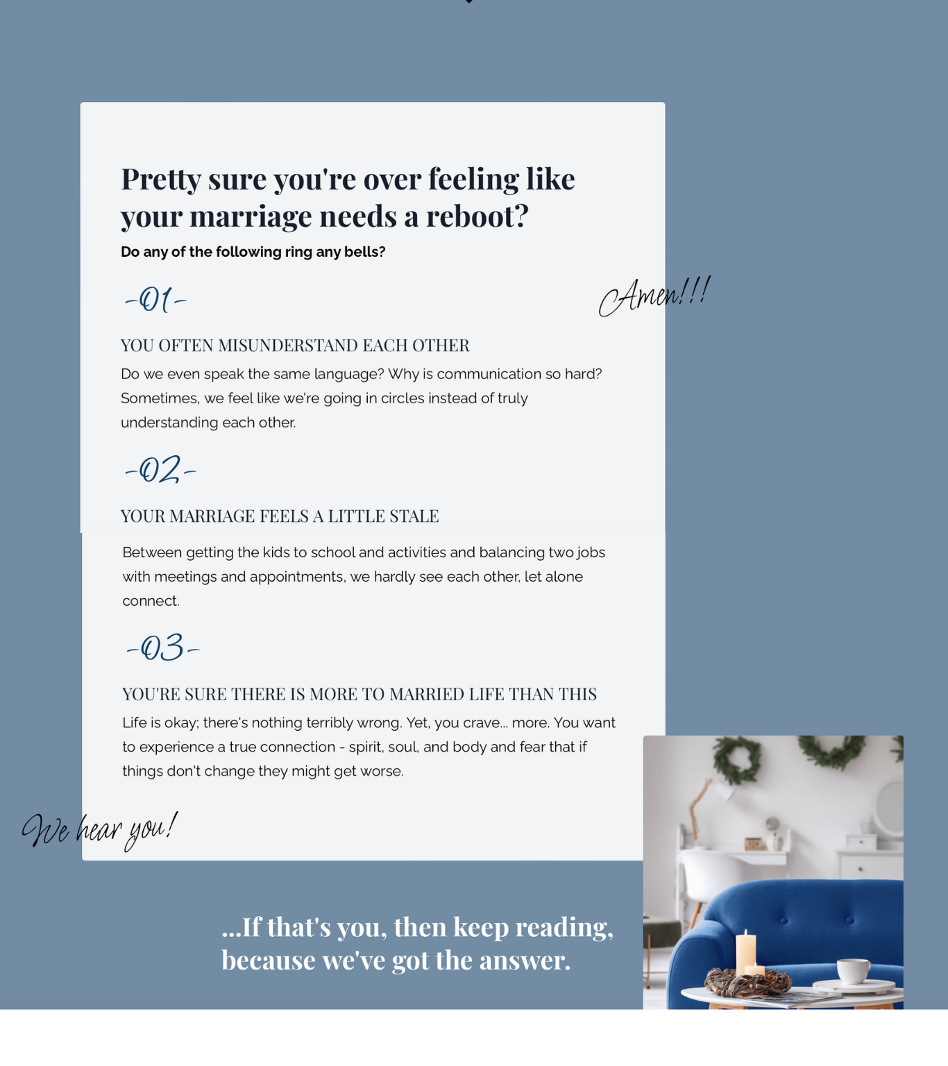 Yep... that's right. Practicing your faith at home - where it matters is the difference. And we will show you how to do that with your life and marriage in an authentic way using practical strategies that you can start implementing right away.